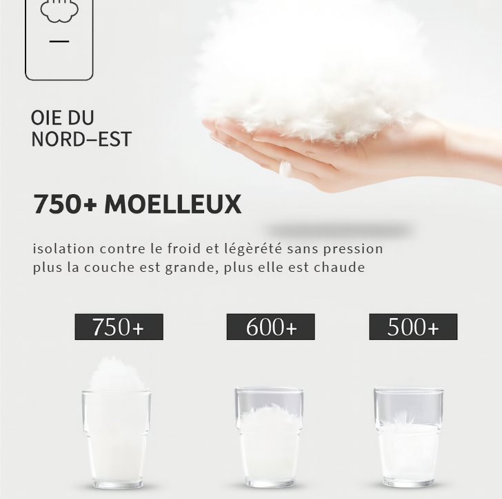 Découvrez la couette en duvet d’oie du Nord-Est, conçue pour offrir une chaleur enveloppante sans aucune sensation de lourdeur.