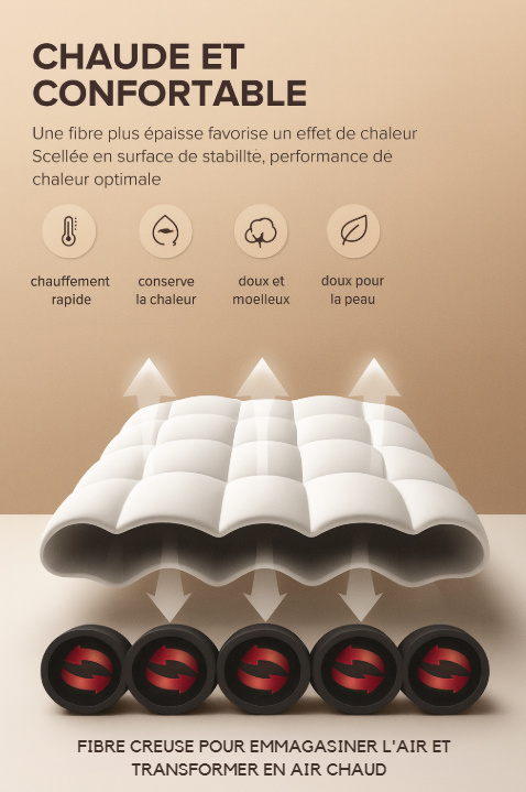 The hollow fiber traps air for an immediate cocoon effect : you stay warm, without overheating. Perfect for peaceful nights and a rested awakening.