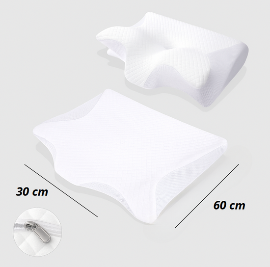 Soutien cervical optimal – housse respirante et lavable. Dimensions : 60 x 35 cm.